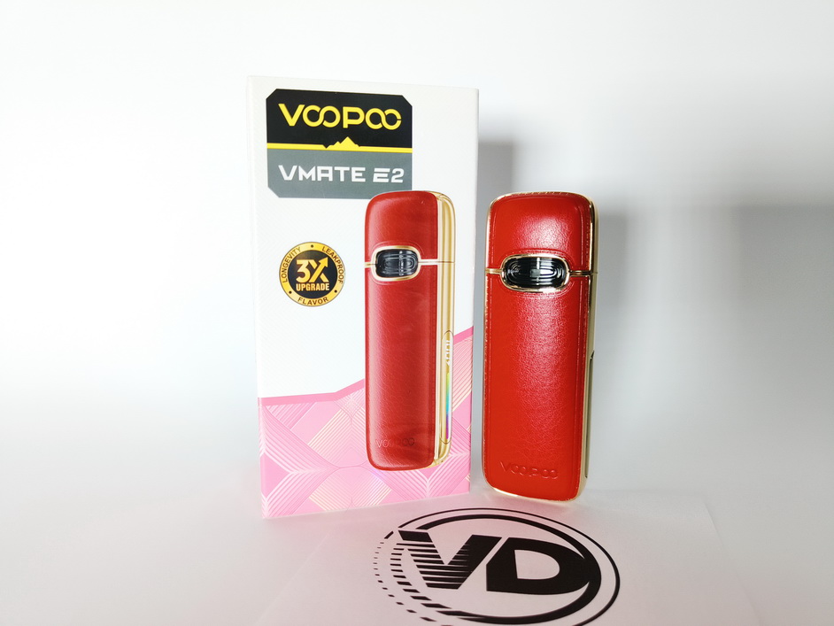 Будьте обережні, щоб не загубити його серед флаконів з парфумами! Електронна сигарета VMate E2 pod здивує вас шкіряним покриттям з обох сторін, що покриває тверду цинкову оболонку корпусу.